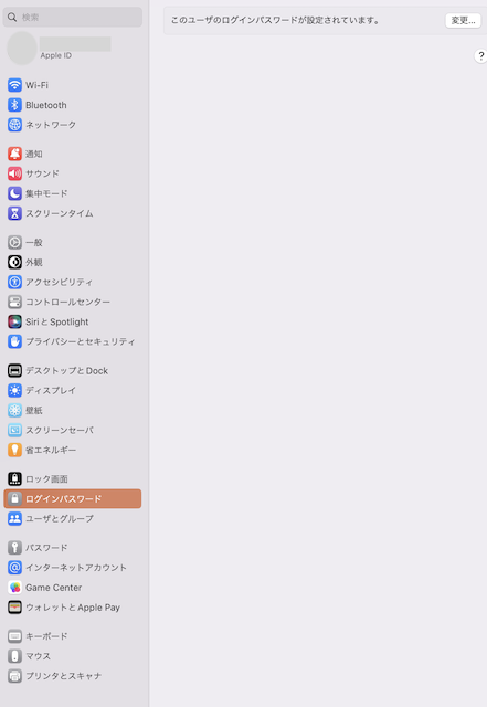 「システム設定>ユーザとグループ」で”自動ログインのアカウント”が有効に設定されていませんか?