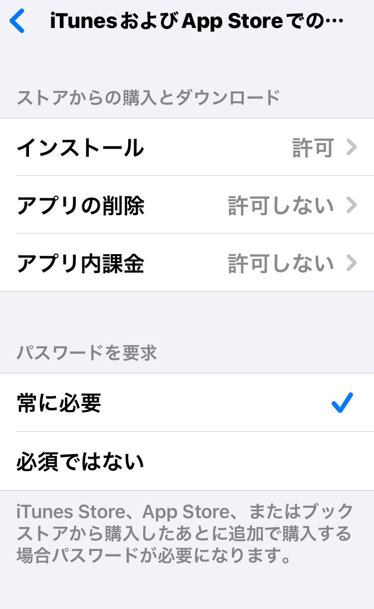 アプリのインストールを勝手にさせたくないのなら、「承認と購入のリクエスト」を有効にするのも一つの方法です。