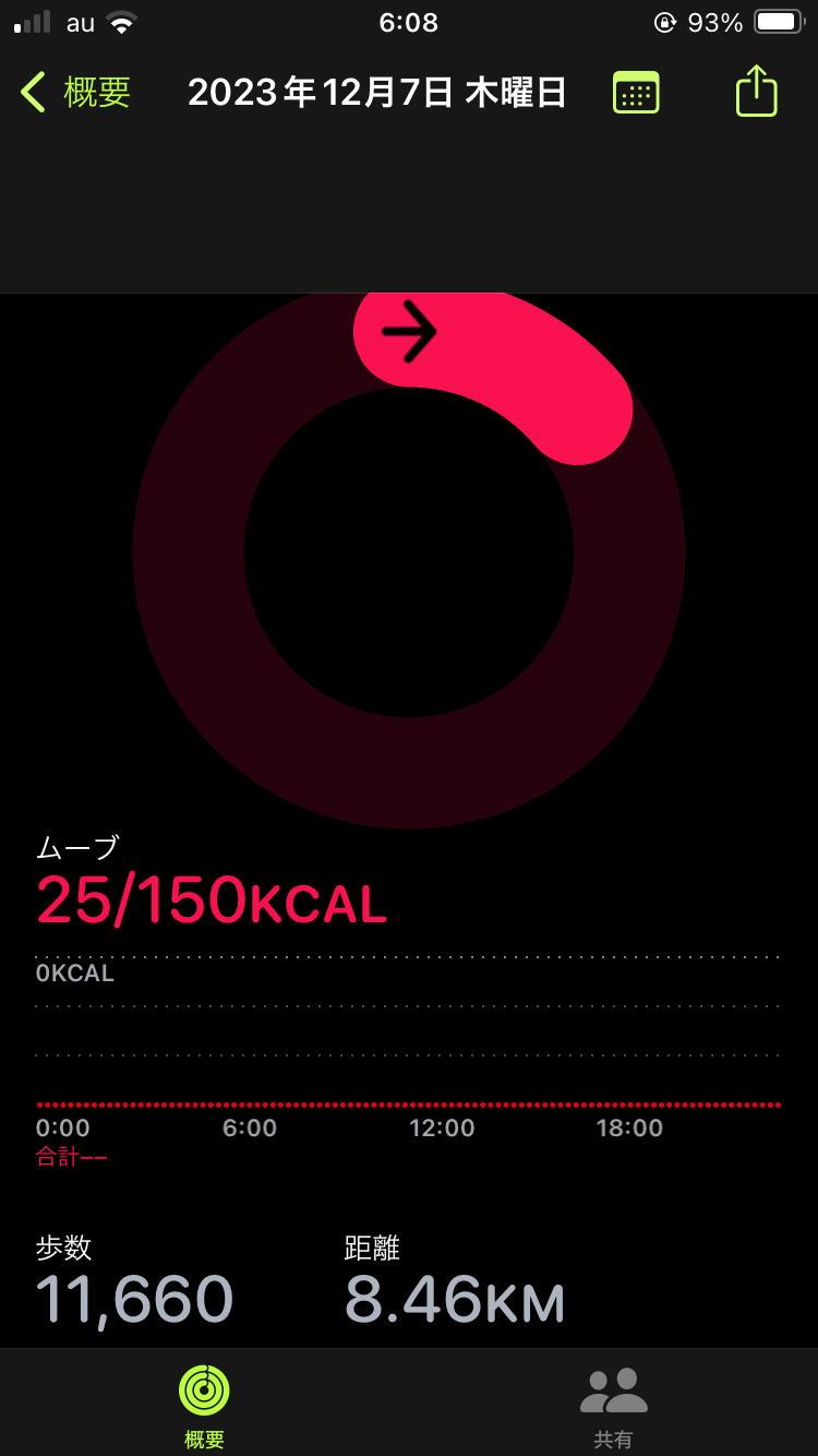 しかしAppleWatch連携していたタイミングのものはムーブゴールには反映されていません。(画像はペアリング解除後のものですが歩数と距離は反映されるもののカロリーのゴールとの整合性がとれてないです。)