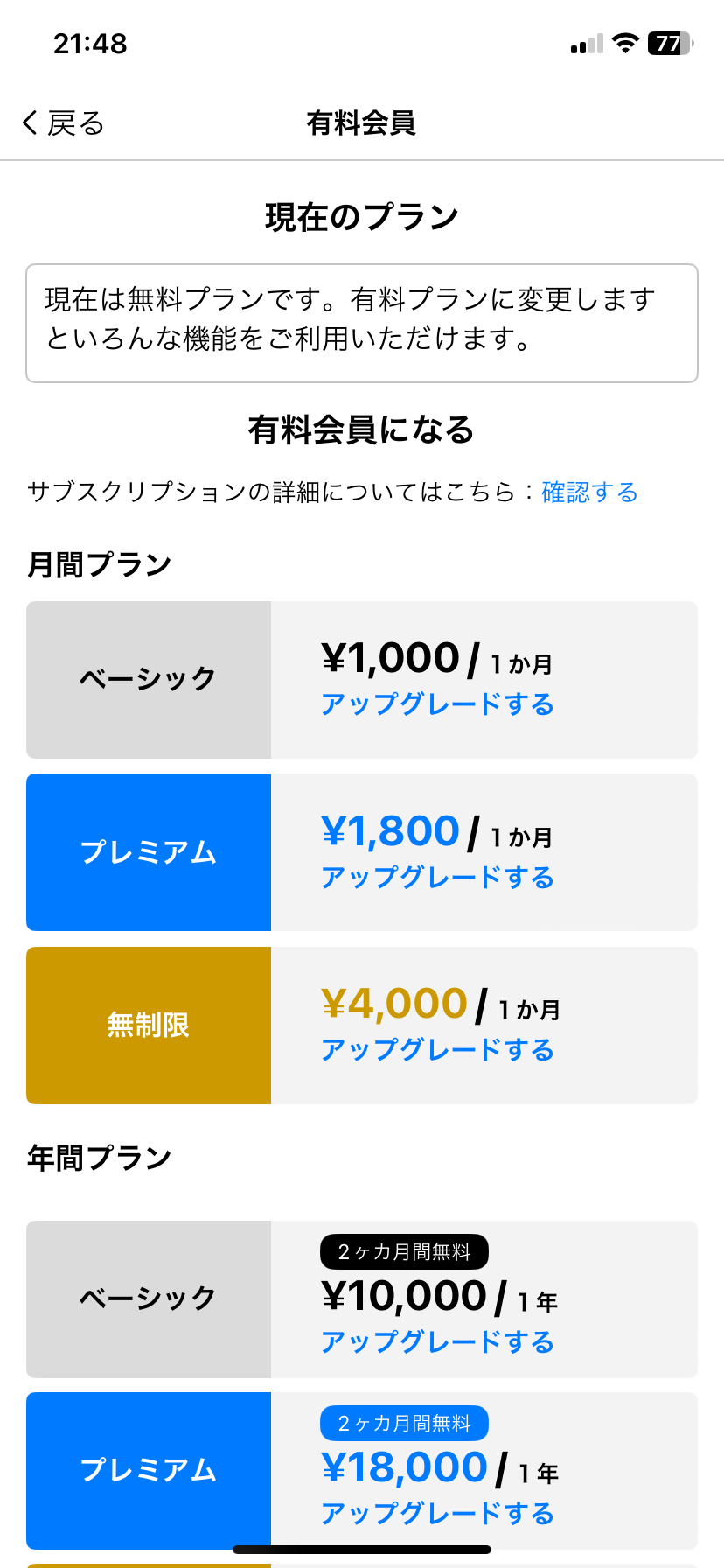 Appleアカウントでサインインしていたのでもう一度同じアカウントでサインインしてみましたが、現在は無料プランですと表示されるばかりで、運営様にも問い合わせましたがいくら待っても返信がなく、ダメ元でAppleに返金リクエストを申請したら返金していただけたので、改めてサブスクリプションに登録したのですが、またしてもサブスクリプションが反映されず、無料プランとなっています。