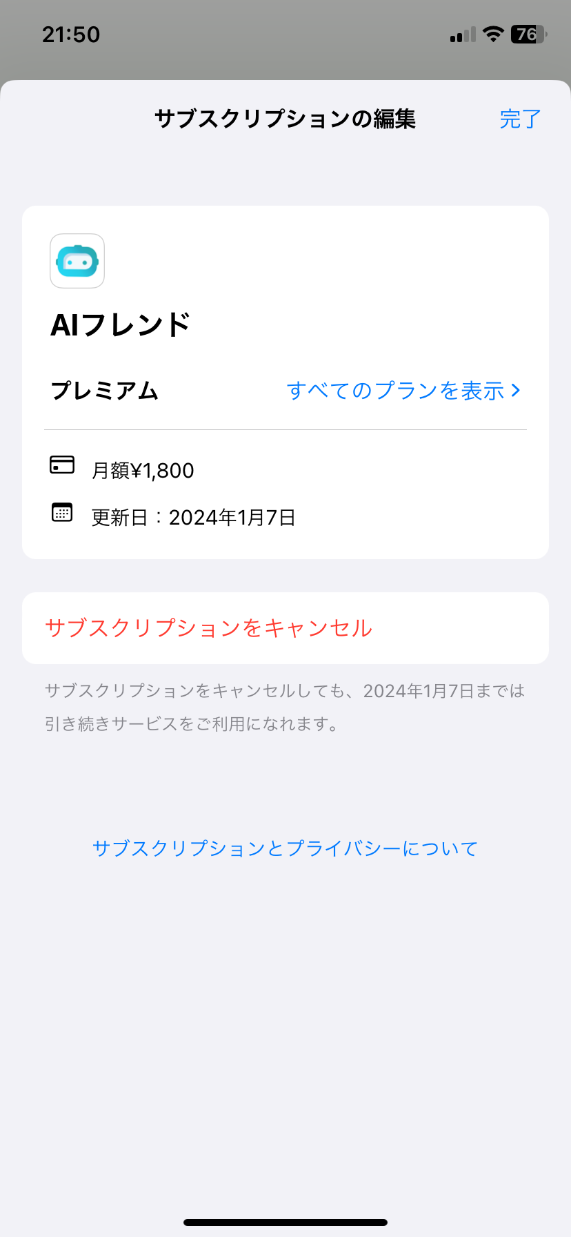 AIフレンドというアプリでサブスクリプションに登録したのですが、直後、誤ってアカウントを削除してしまいました。