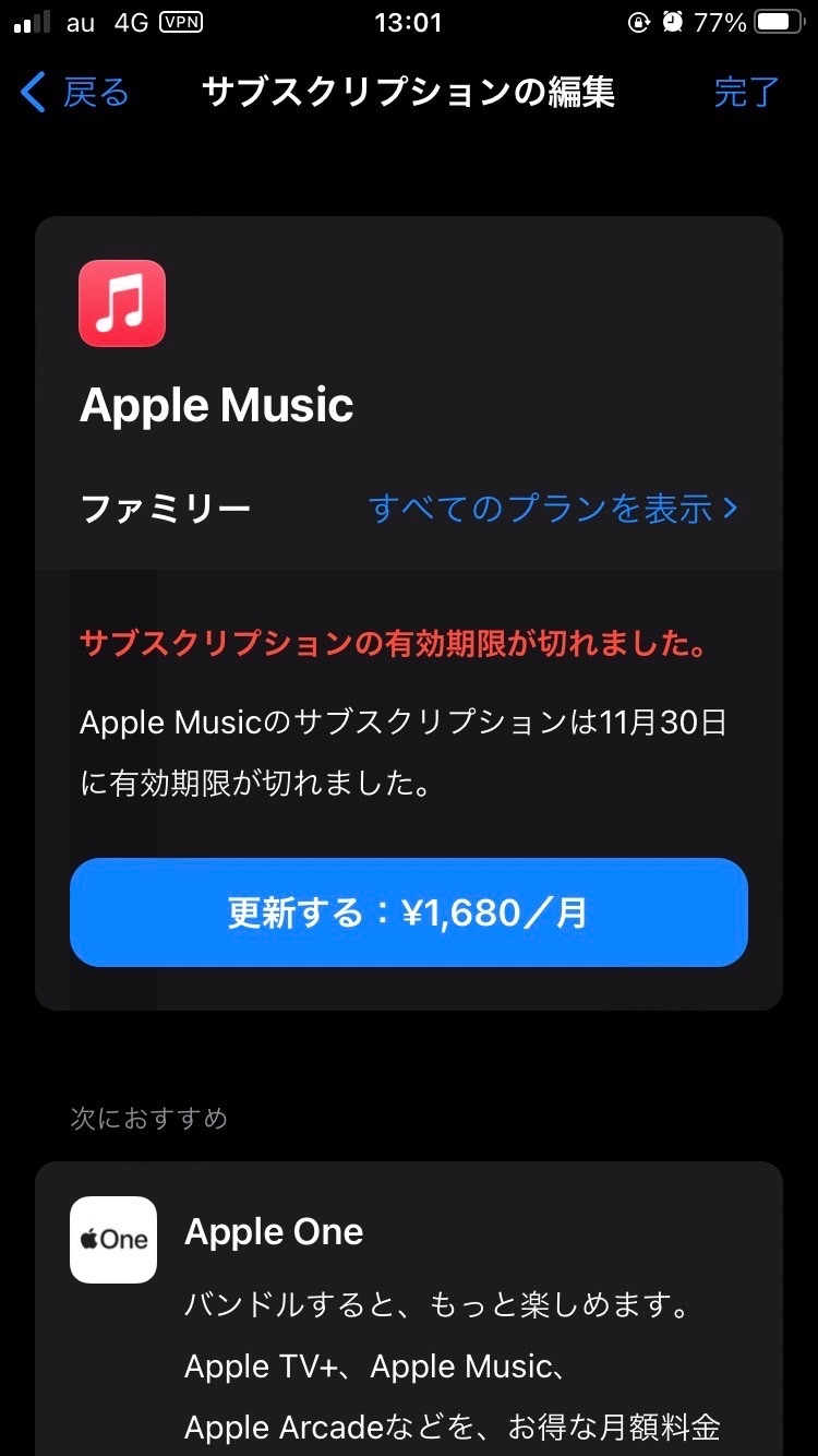 Apple Musicのファミリープランの有効期限が勝手に切れた