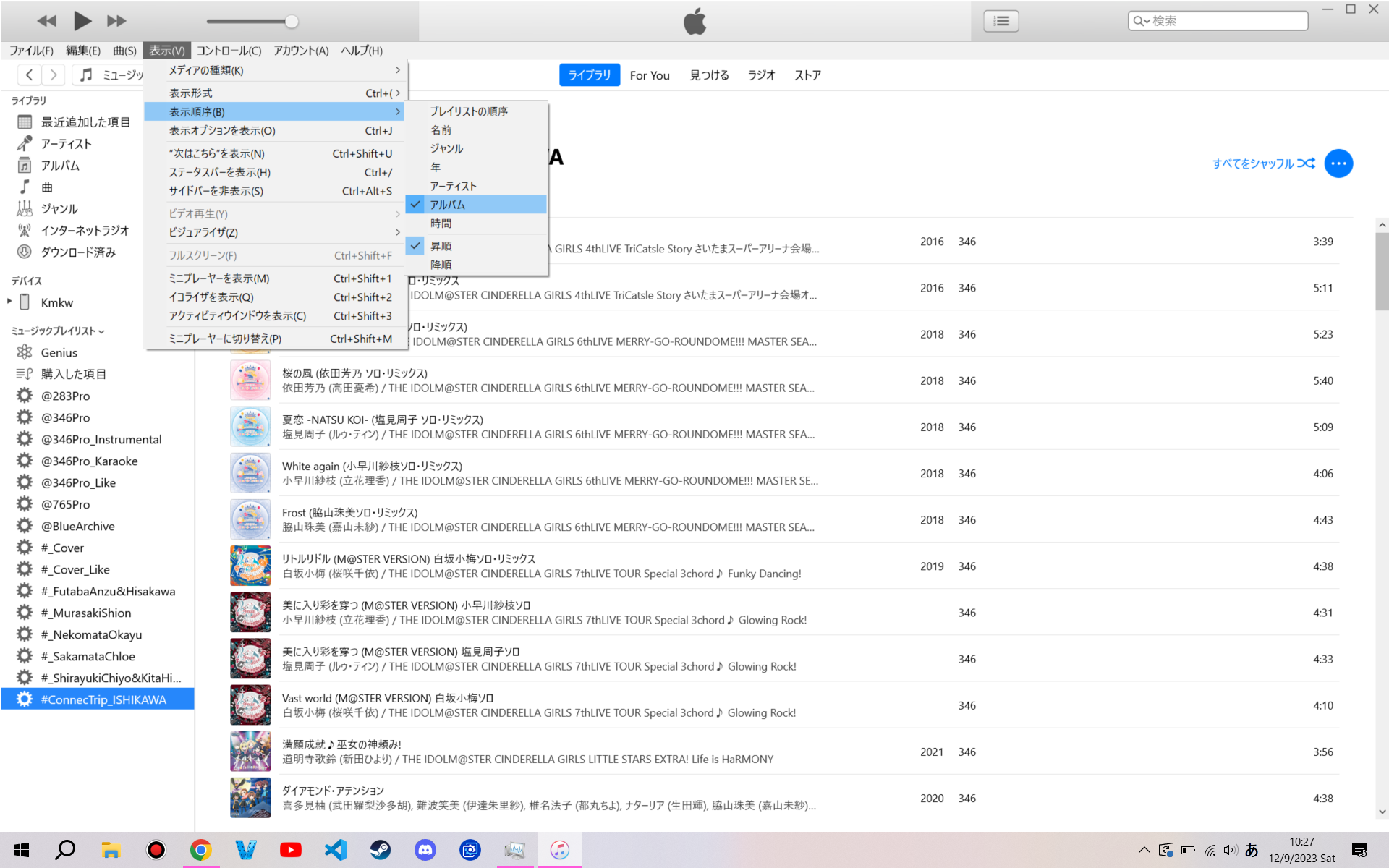 並び順を変更しようと試みているプレイリストは
