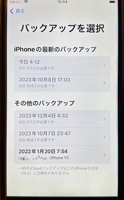 ②その後iPhone15を再度初期化し12/11のバックアップで復元し直す