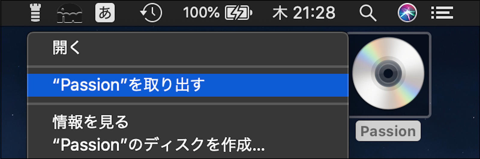 ディスプレイ右上に取り出しボタンのマーク(ejectキー)は表示されており、クリックするとApple SuperDriveとは表示されますが、文字が薄く表示されててそこをクリックすることはできません。