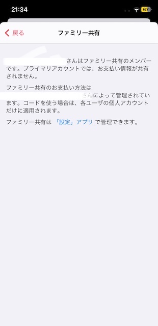 ファミリー共有はONになっていましたし、メンバーとしてもちゃんと入っているようです【画像1枚目】