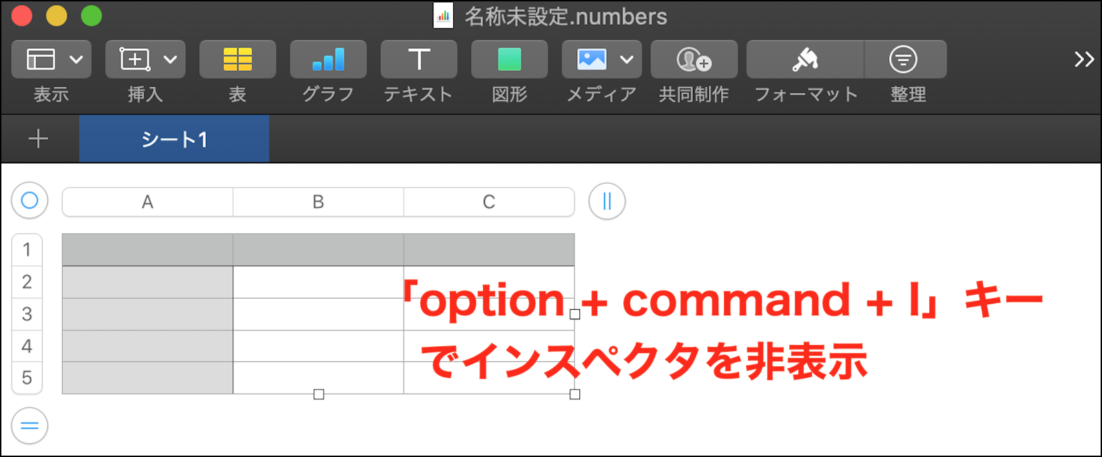 「option + command + I」キーでインスペクタを非表示 にして下さい。