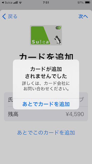 モバイルスイカ -「カード会社に問い合わせください」となる