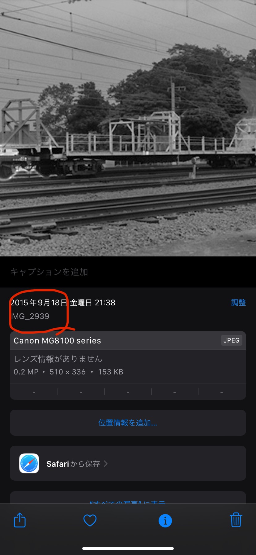 にサインインし、そちらから写真をアップするとiPhoneの写真アプリでもファイル名が表示されるのですよ。