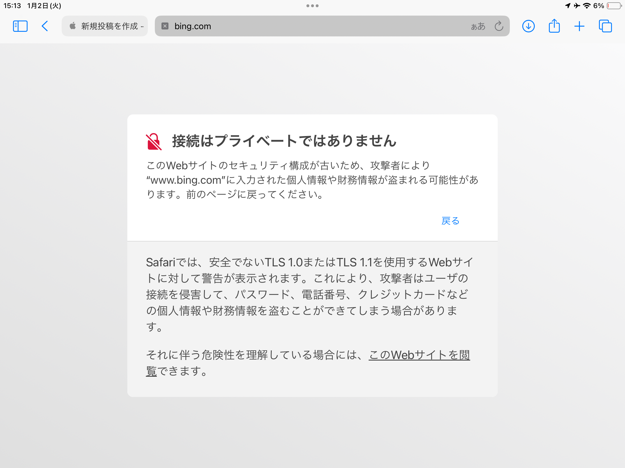 Safariでhttps://www.sony.jp/、https://www.bing.com/?cc=jpなどで、接続はプライベートではありませんと毎回表示されるようになりました。 別のブラウザでは問題ありません。