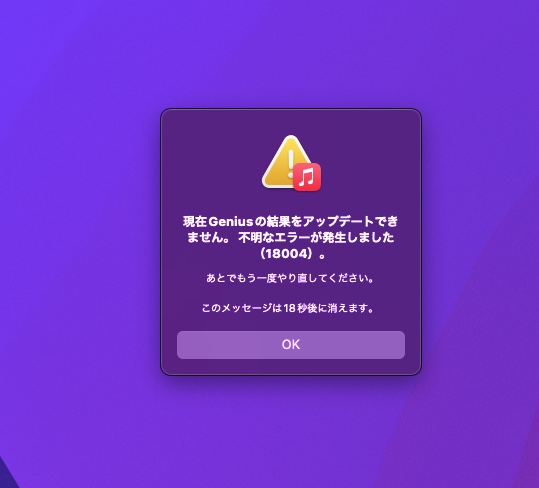 過去にも同じ質問があったようですが、ミュージック.appでicloud music ライブラリの同期が18004というエラーで同期できません。