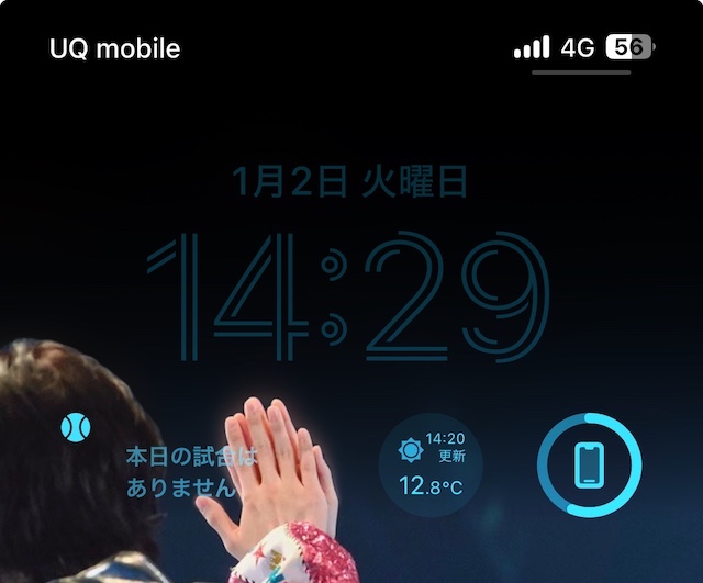 ・ウィジェット (カレンダー、時計、天気、フィットネス、リマインダーなど) を追加または削除するには、時刻の上下にあるボックスをタップします。