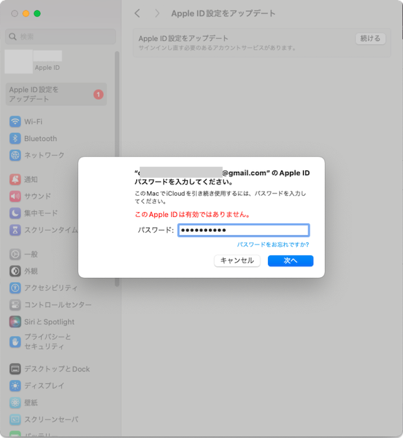 今は「このApple IDは有効ではありません。」エラーを表示されています。