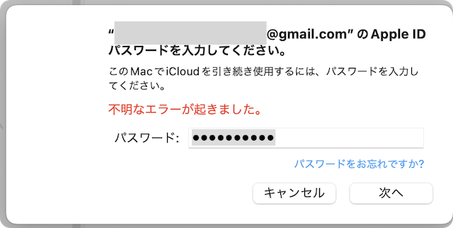 「パスワードをお忘れですか?」リンクをクリックして、「不明なエラーが起きました。」エラーを表示されています。