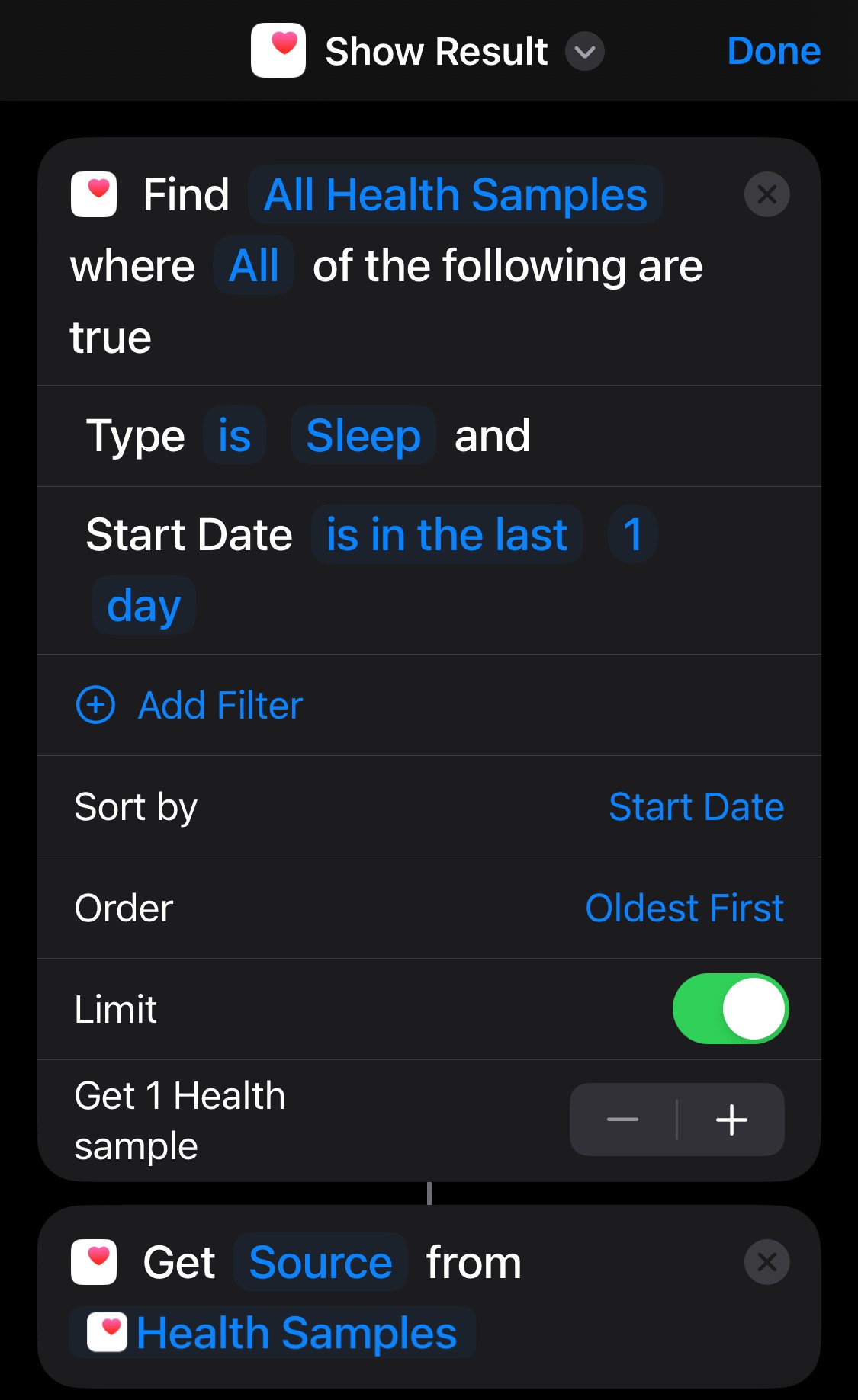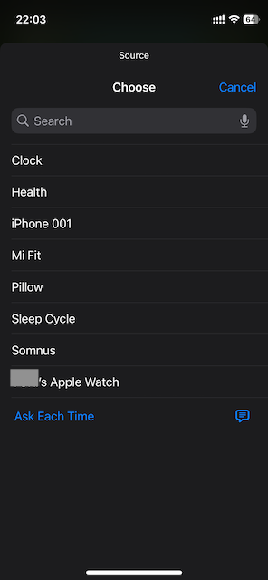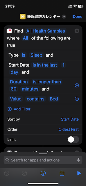 Shortcutアプリで睡眠データを「ソース」でフィルターできない