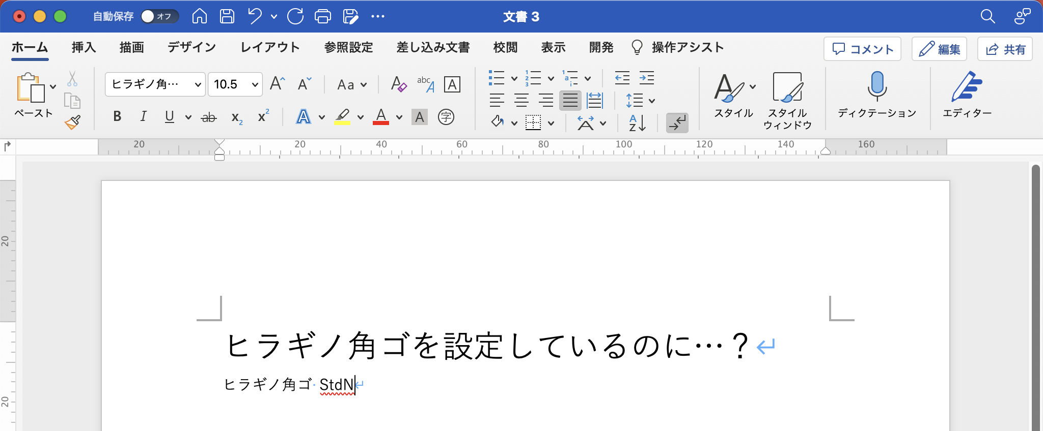 ヒラギノ角ゴ StdNなどのフォントを設定しても游ゴシックに置き換わる挙動になっています。