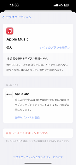 6ヶ月無料トライアルを試してみようと思ったら間違えて1ヶ月無料トライアルに登録してしまいました。