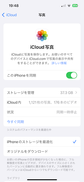 iCloud写真に同期が完了してもすぐに最適化が始まるわけでは無いと…。