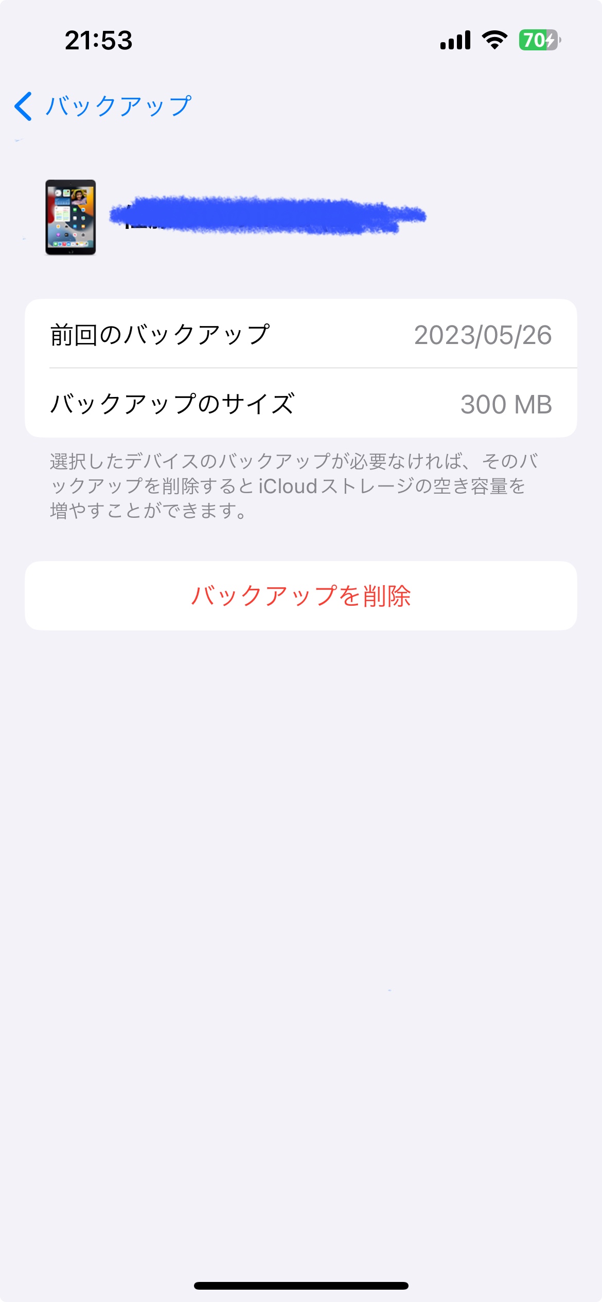 別端末のiPadのバックアップを削除したらiPhoneの容量は増えますか?