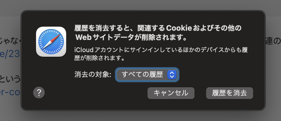 Safariの履歴削除で改善については、画像のポップアップの内容で削除操作をしました。