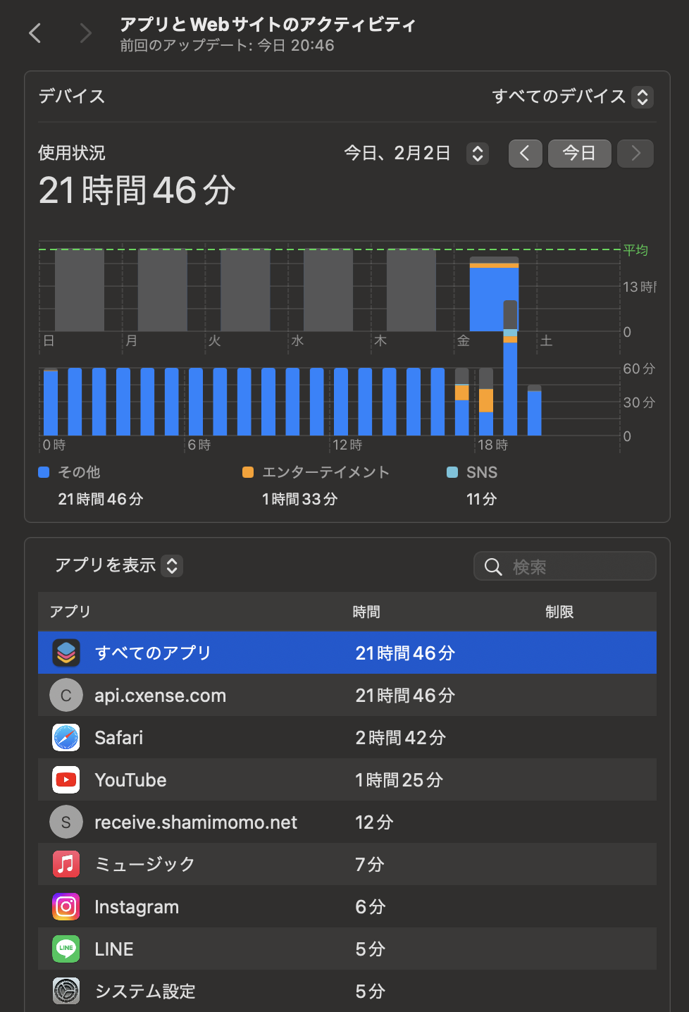 Mac のスクリーンタイムのアクテビティ - 「api.cxense.com」とは何か