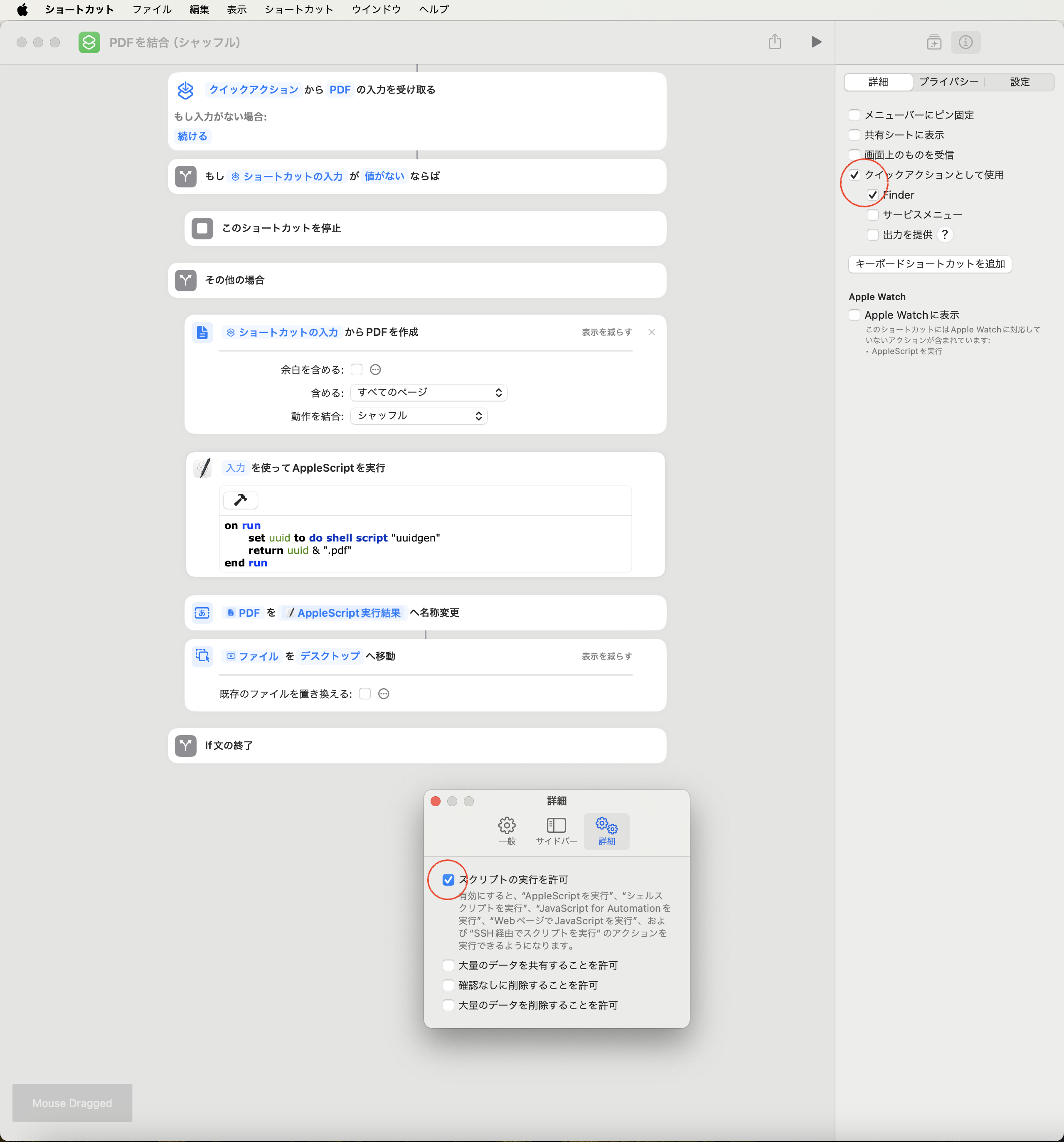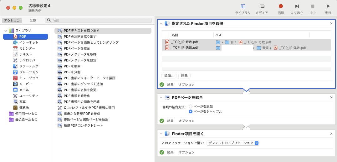 MacのAutomatorで PDF2ファイルを結合すると真っ白な1ページのPDFが出力され、結合ができません