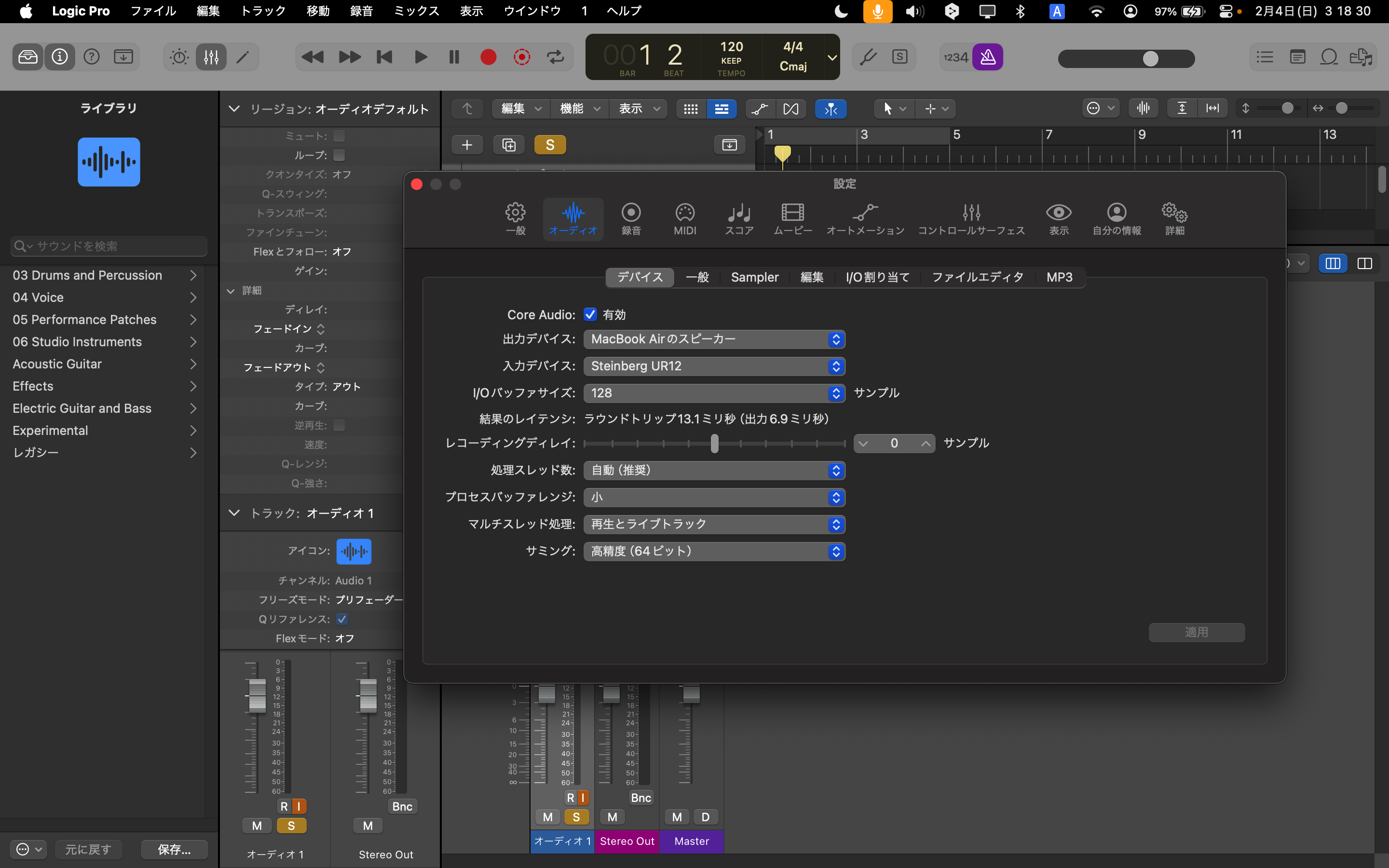 steinbergのUR12を使ってギターの録音を試みようとしたところ、無音のまま録音が開始されてしまいます。録音ボタンは押してます。Garagebandでの録音や、MacBookのマイクを使っての録音はできます。