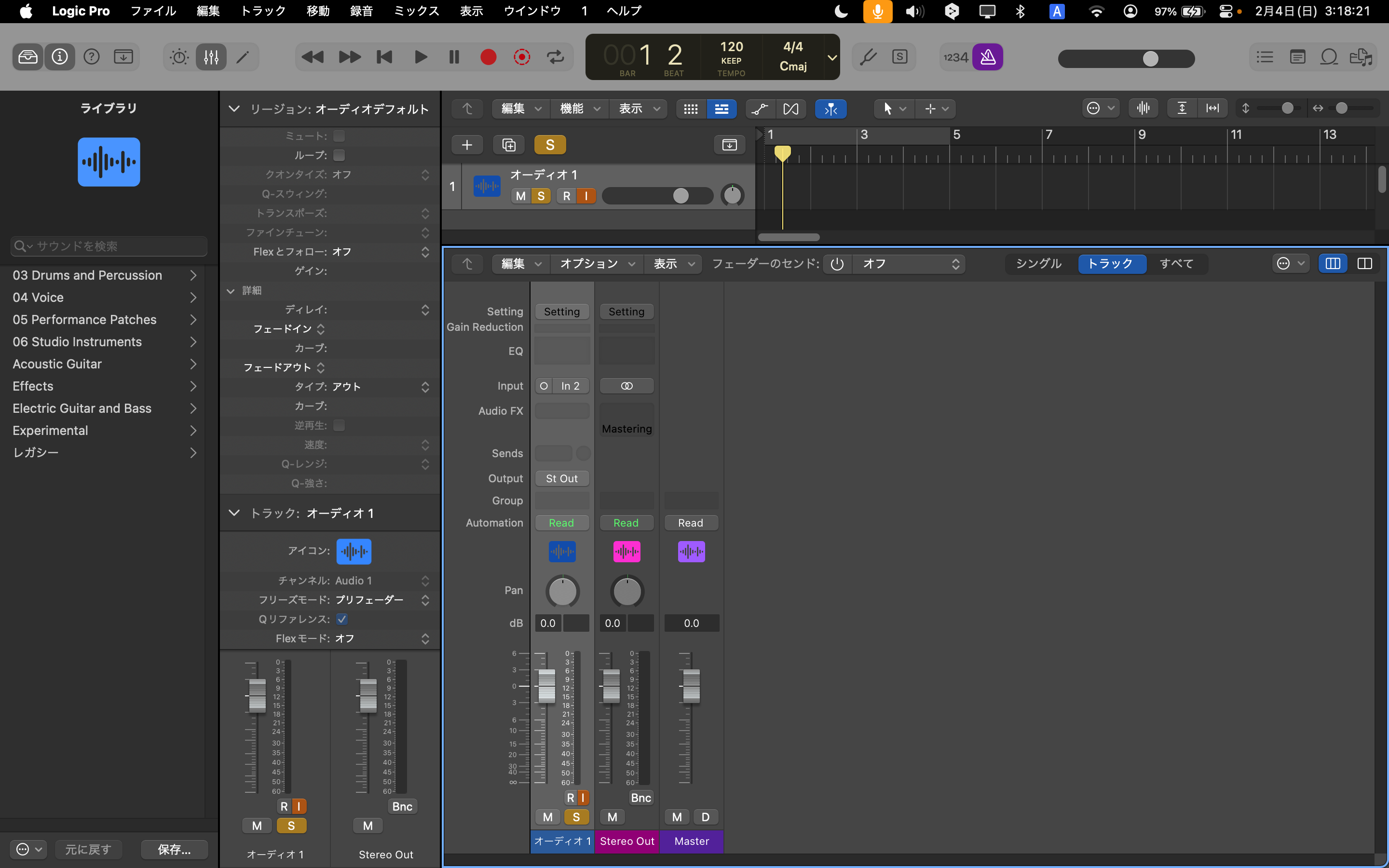 この時,Logicのオーディオ1のレベルメータは振れているのですか?