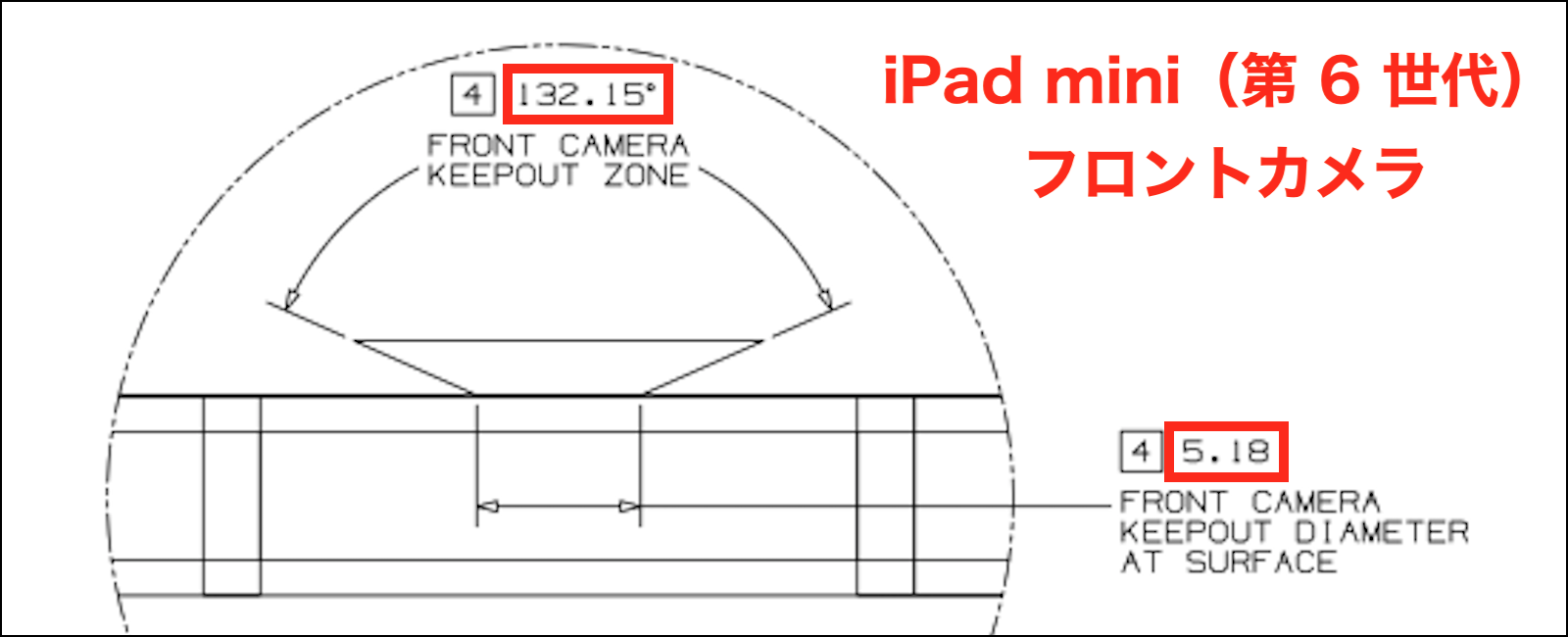i Pad mini (第六世代)を、壁のパネルの裏側に設置するのですが、フロントカメラの正確な位置、サイズを知りたいです。