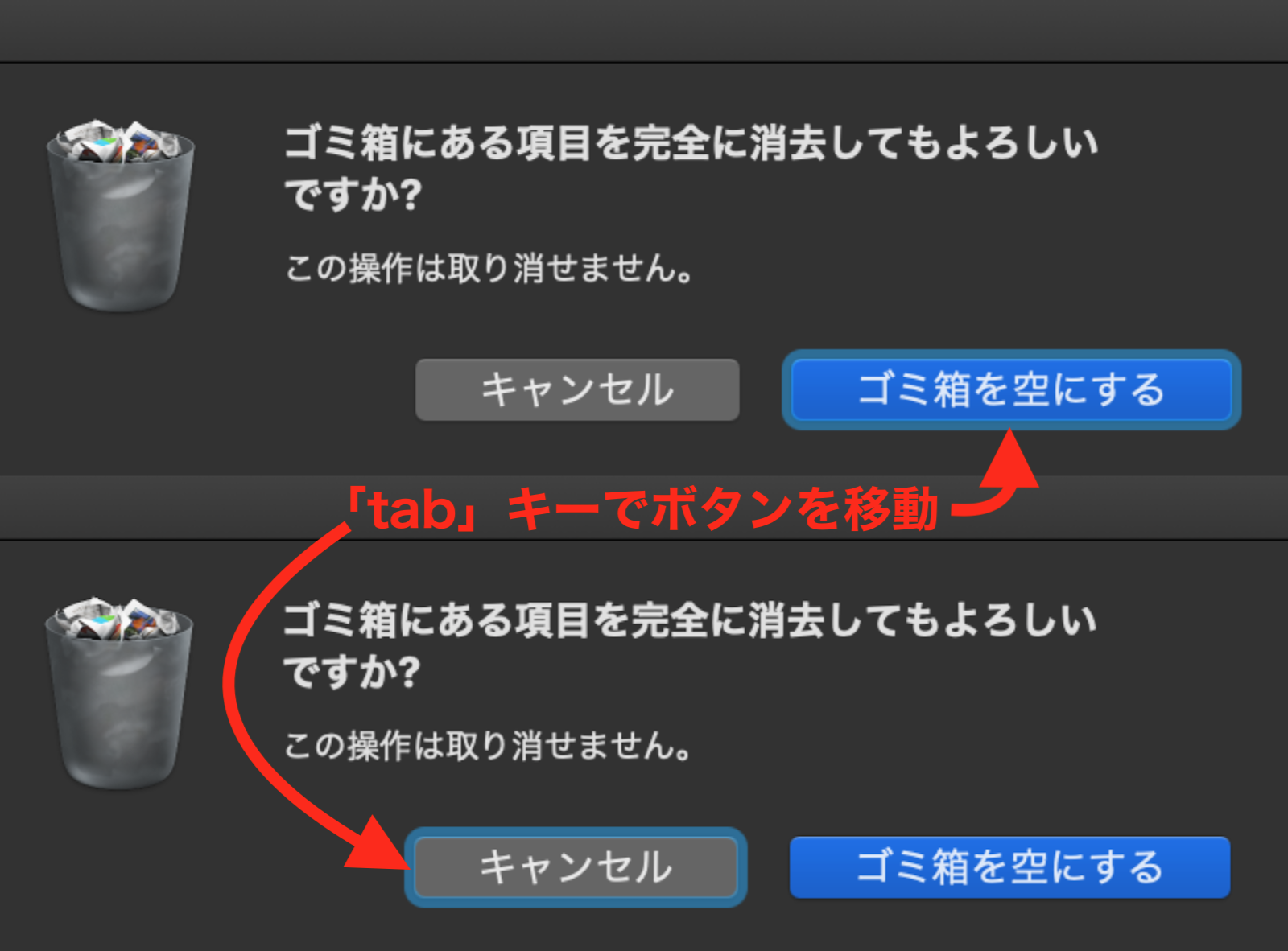 MacOS 各種確認ウィンドウのボタンをキーボードで移動したい