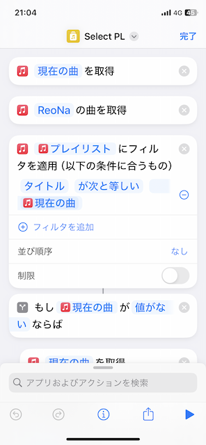 今再生している曲が指定したプレイリストなければ追加するショートカットを作成しました。