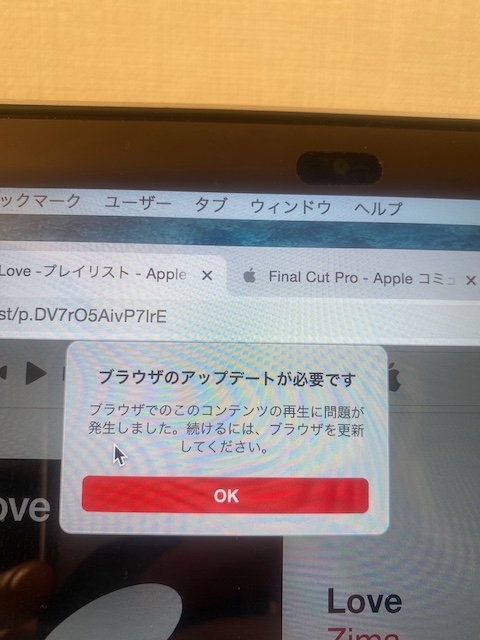 Macでapple musicを再生しようとしたところ「ブラウザのアップデートが必要です」と出てきてしまい再生できません。