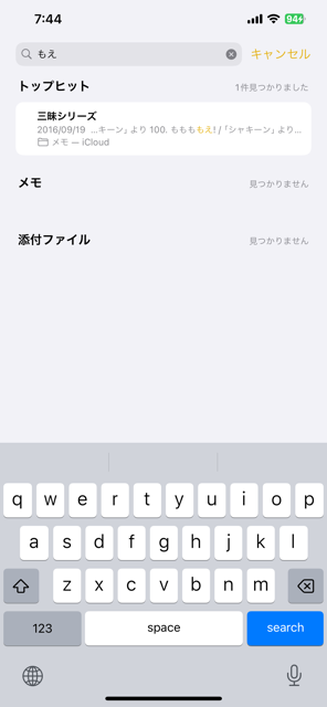 iPhone のメモ帳にて、検索に引っかからない文字があります。