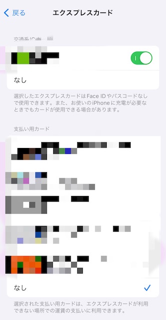 設定画面のウォレットとApple Payの交通系ICカード(エクスプレスカード)の部分を開くと交通系ICカードの下に支払い用カードとありますが、この支払い用カードって改札を通る時にしか使えないのですか?