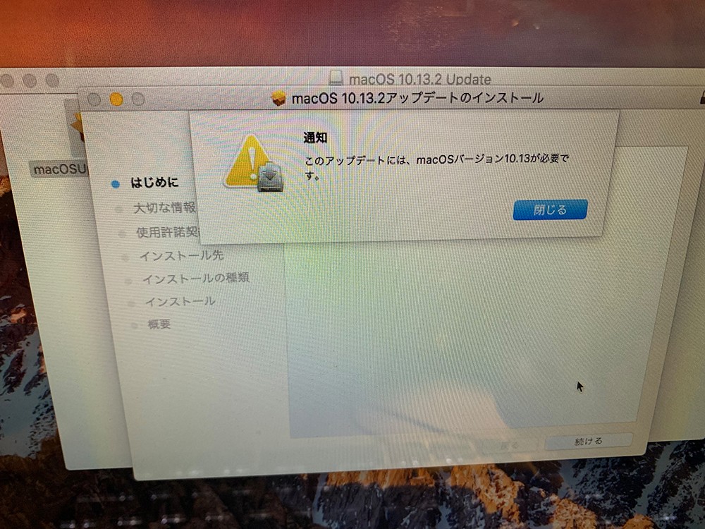 インストールできずに「10.13が必要です」と表示されてしまいました。
