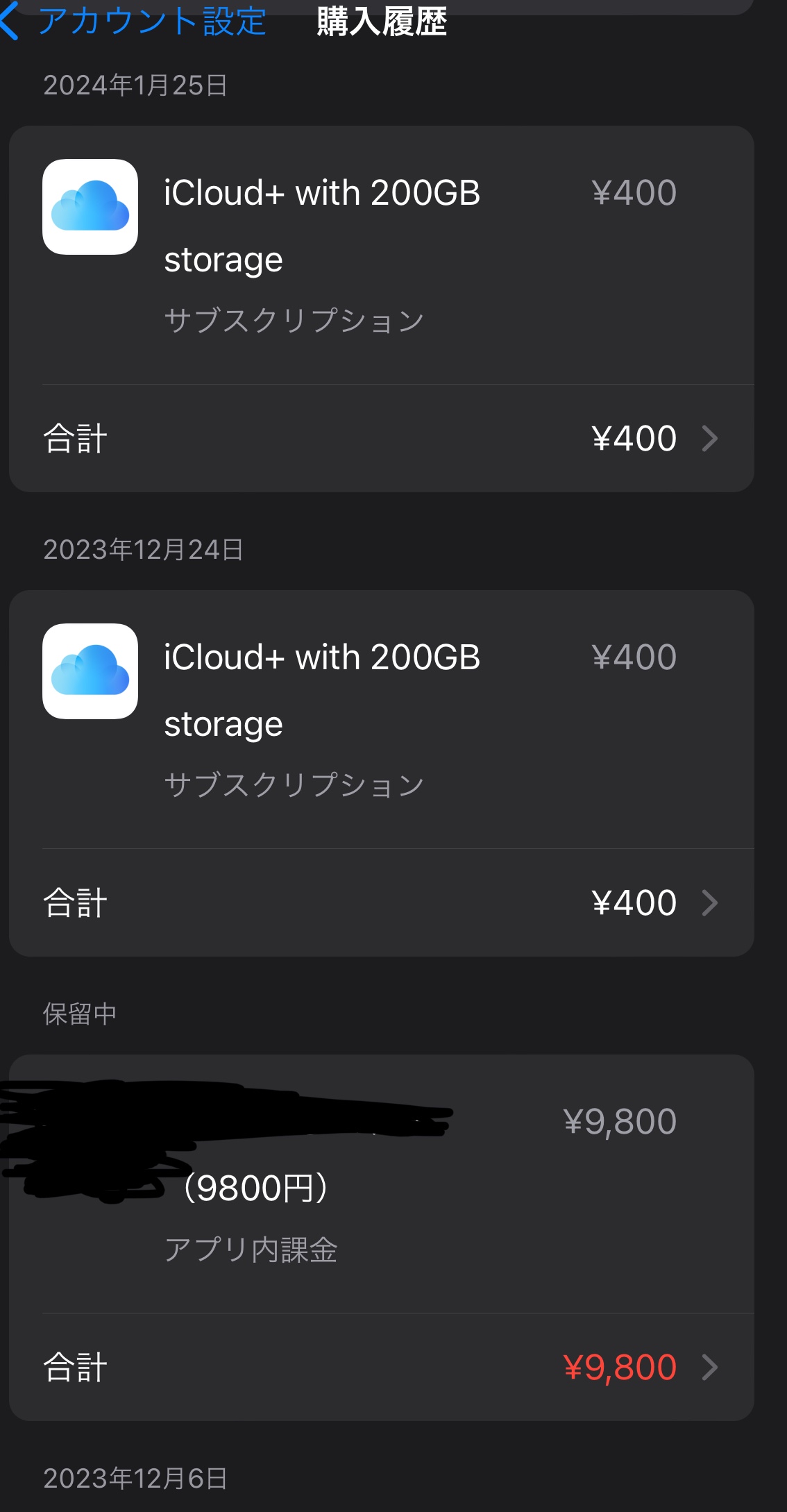 購入履歴を見ても、ギガ数などは支払えているのに、課金分だけずっと保留のままでして。。