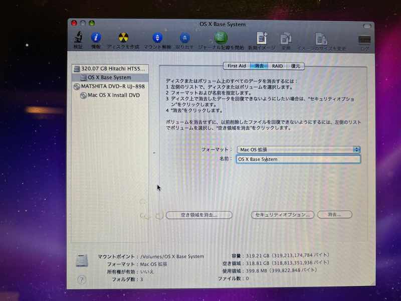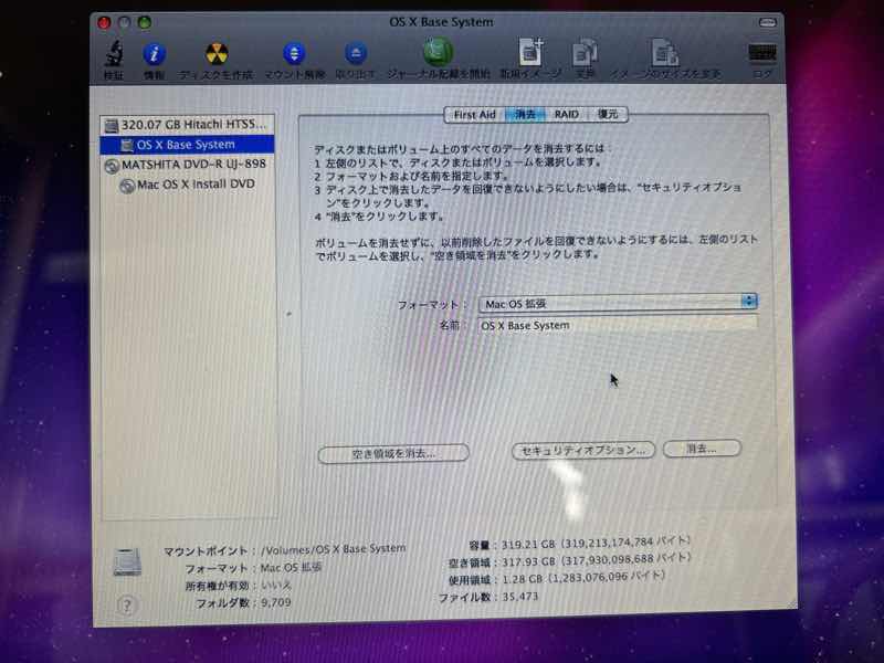 ④気づいたらOS X Base Systemが内蔵の方と、下のところに出現。していたが下のところのは再起動やらなんやらで消滅。