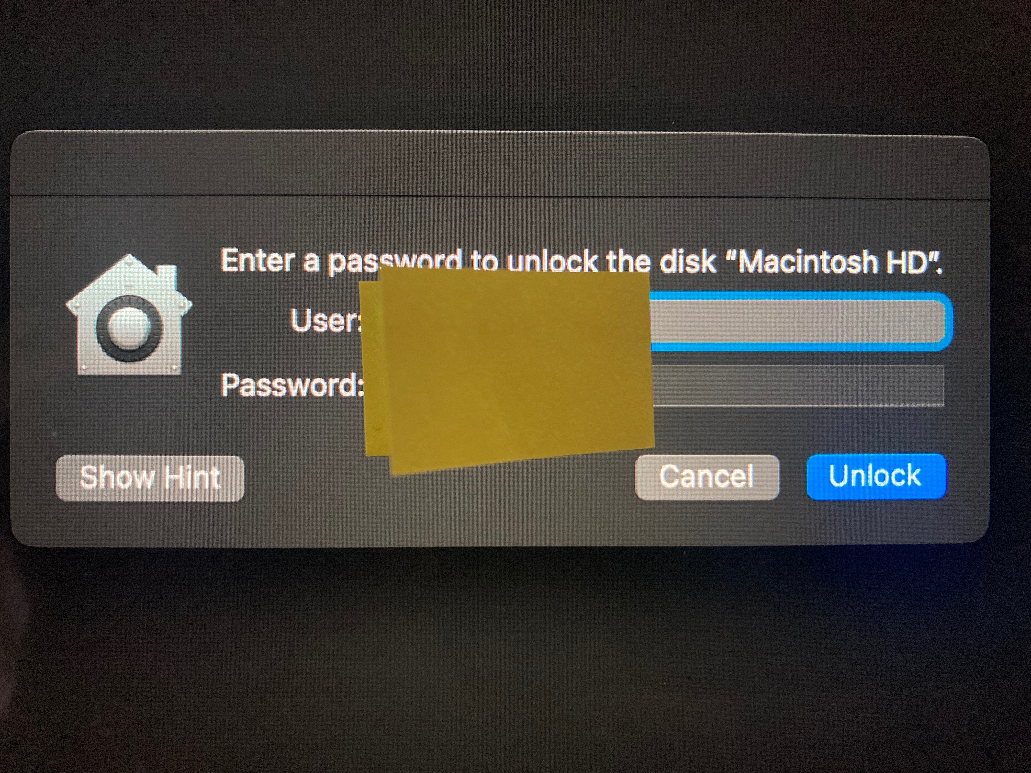 Windows10からmacに移行する際に、再起動→optionキー押下という手順でディスク選択画面を表示させ、そこからmacのディスクで起動しようとしたのですが、求められた通りにmacの自分のユーザのログイン用のパスワードを入力したところ、リンゴのロゴが数秒間表示された後にまたパスワードの入力をもとめられました。