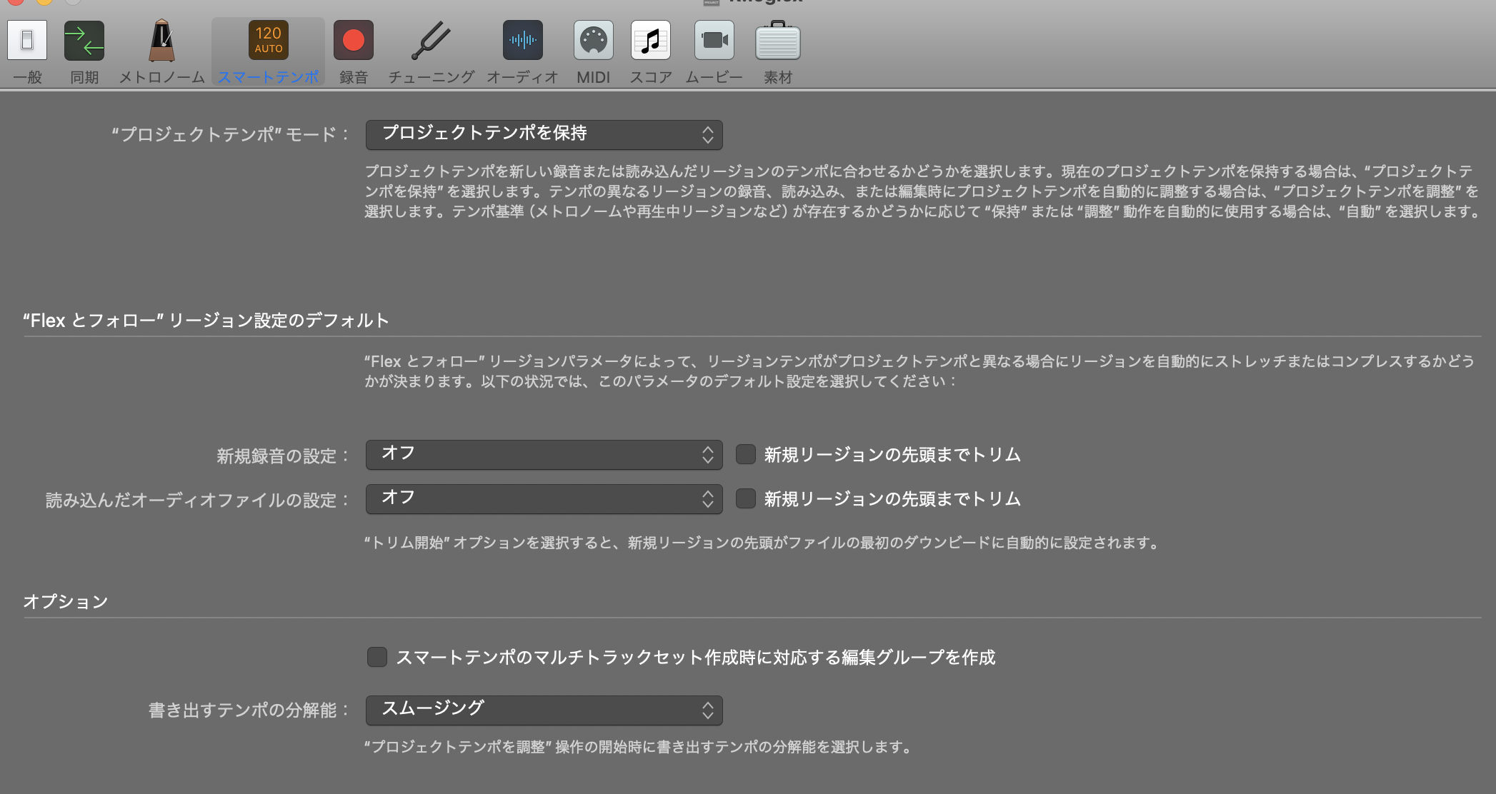 詳細8:「プロジェクトテンポを保持」になっていることを確認