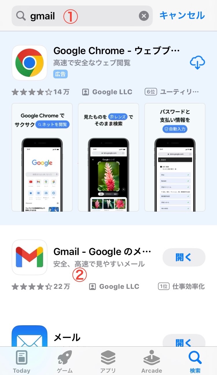 2. アプリ名を入力し検索…①