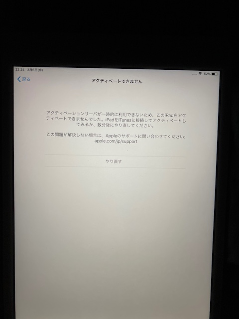 アクティベーションサーバか一時的に利用できないと表示され先へ進めない