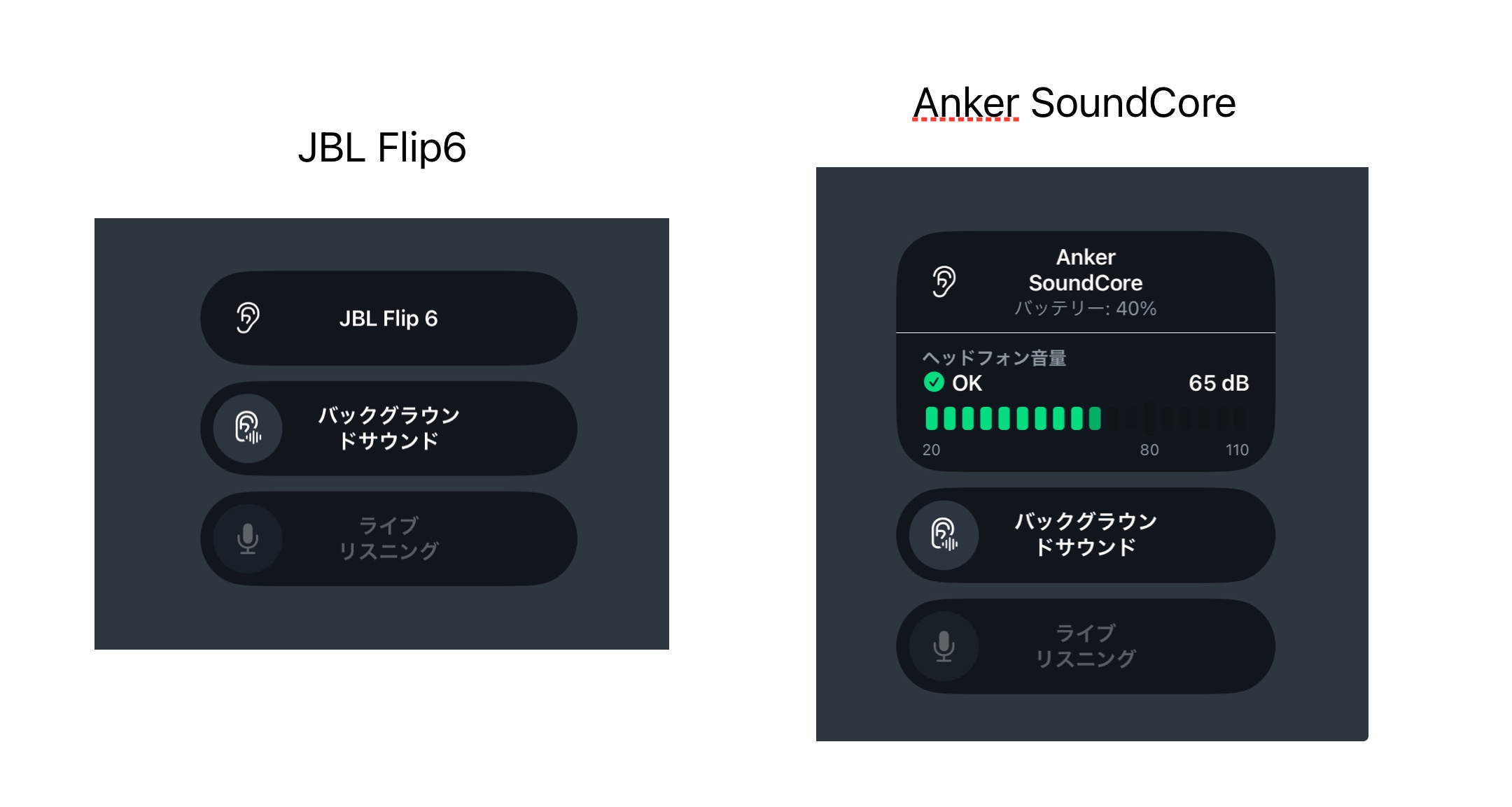 「聴覚」でイヤホンやスピーカーのデシベル(音量)をリアルタイムで表示できる機能がありますが、きちんと表示されないスピーカーがあります。