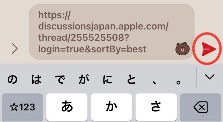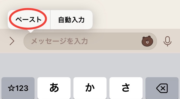 LINEアプリで、送信したい友だちのトーク画面にペーストを貼り付け