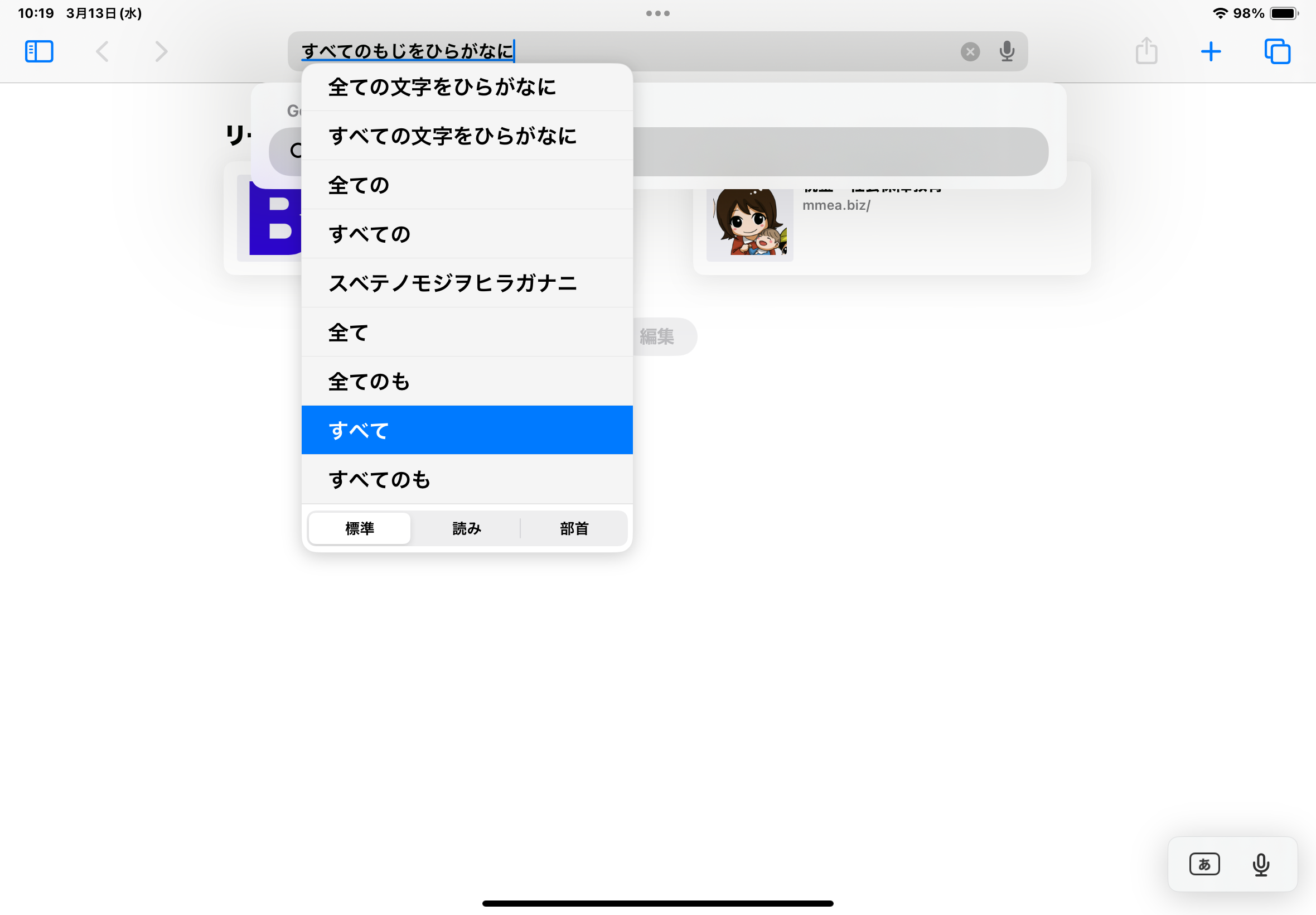 iPad と Magic Keyboard FOLIO で入力した文字をすべて平仮名に変換するには?