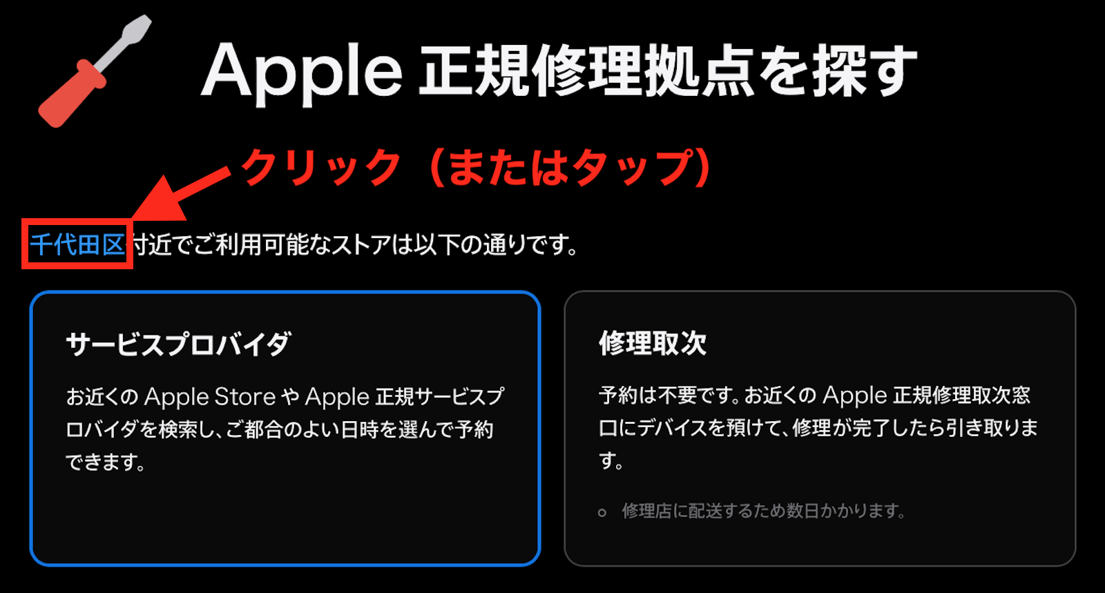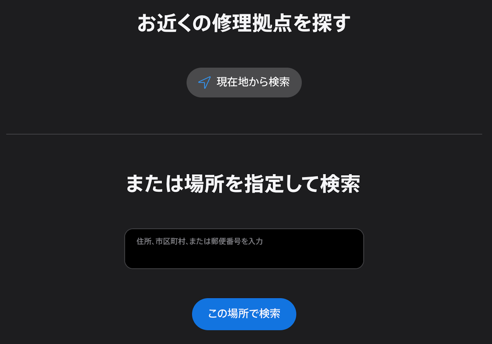 ( iPad の「持ち込み修理」を行いたい修理拠点が表示されない場合は、「もっと表示する」のリンクをクリック(またはタップ)して下さい)