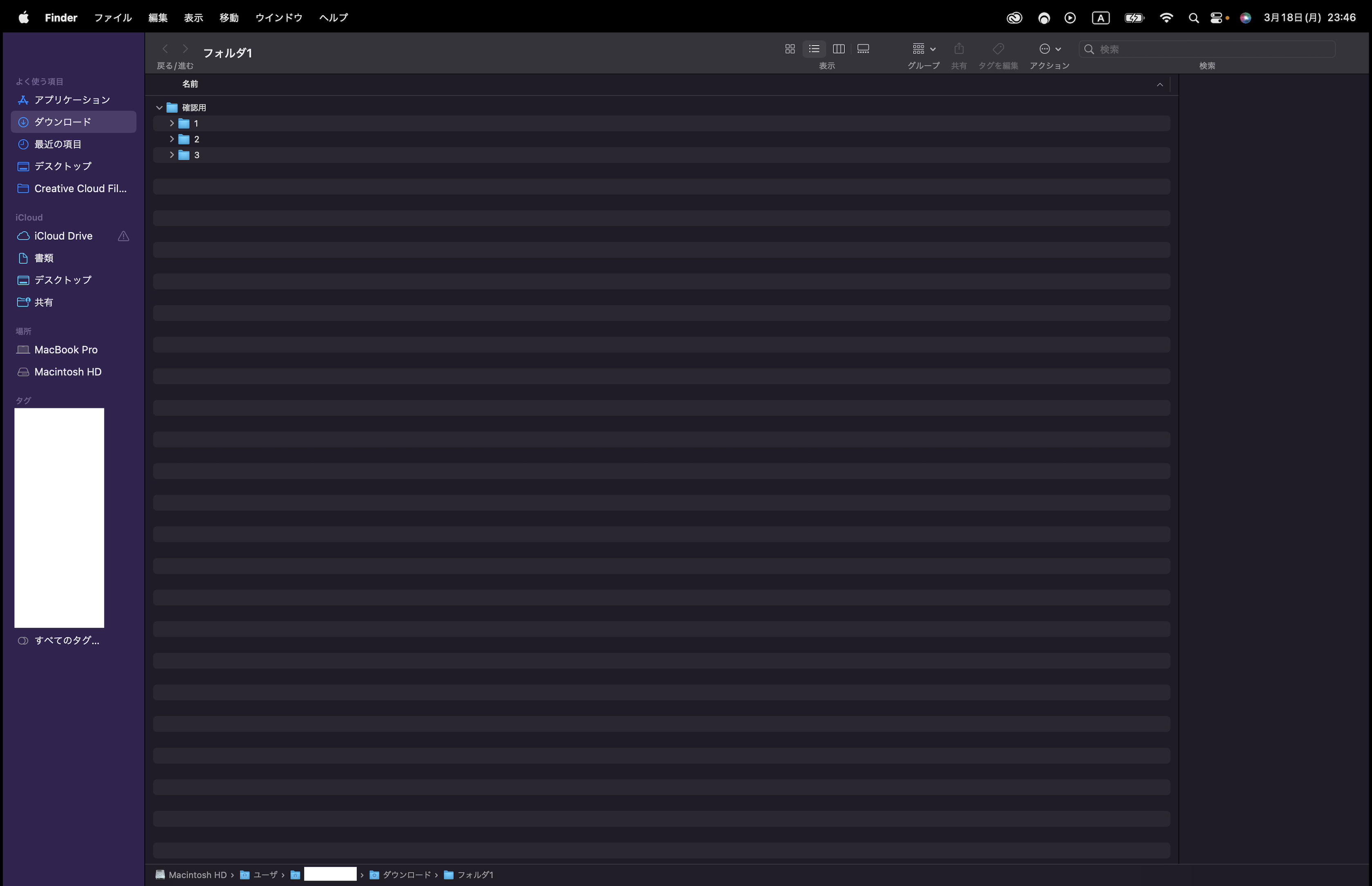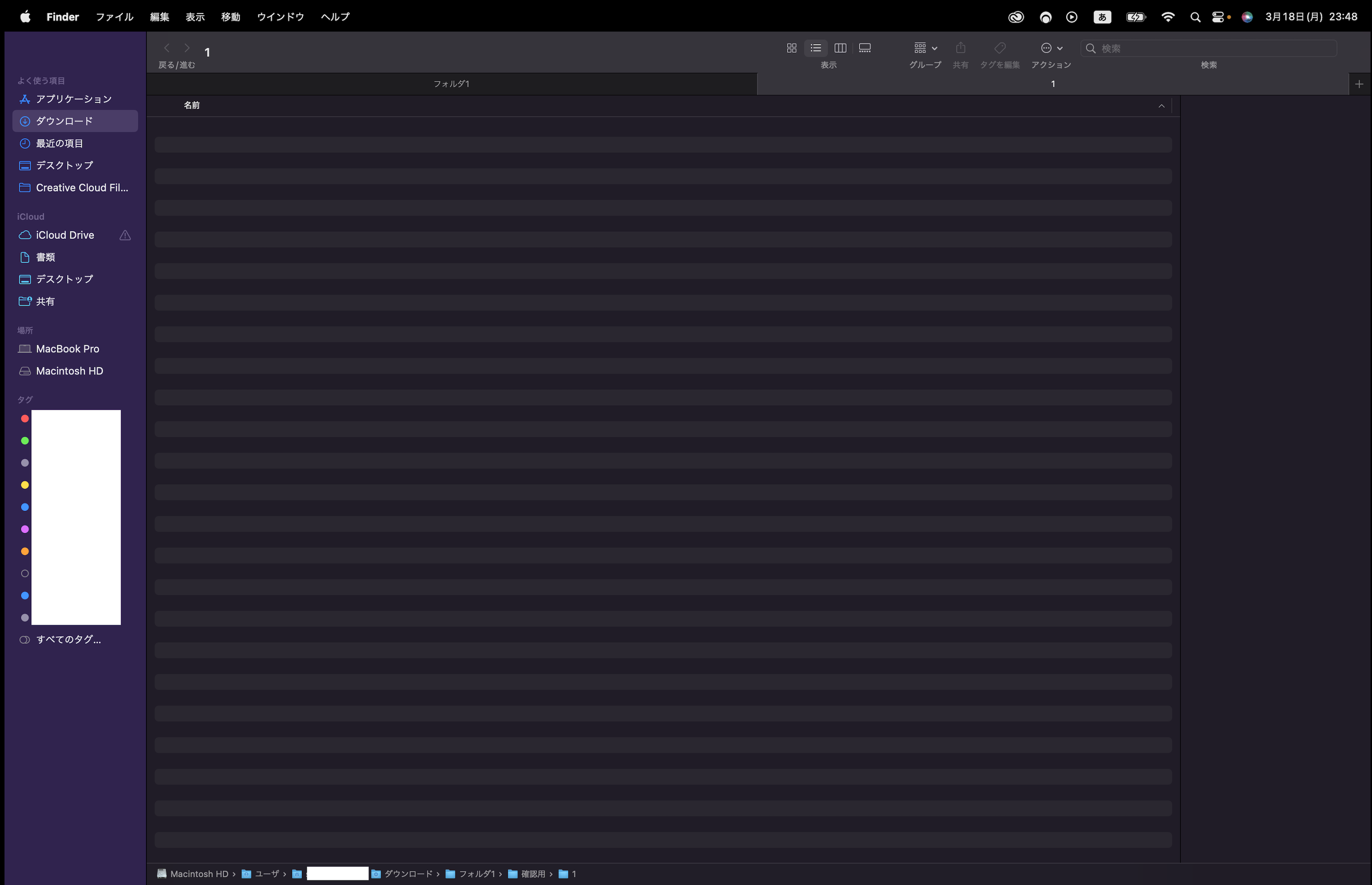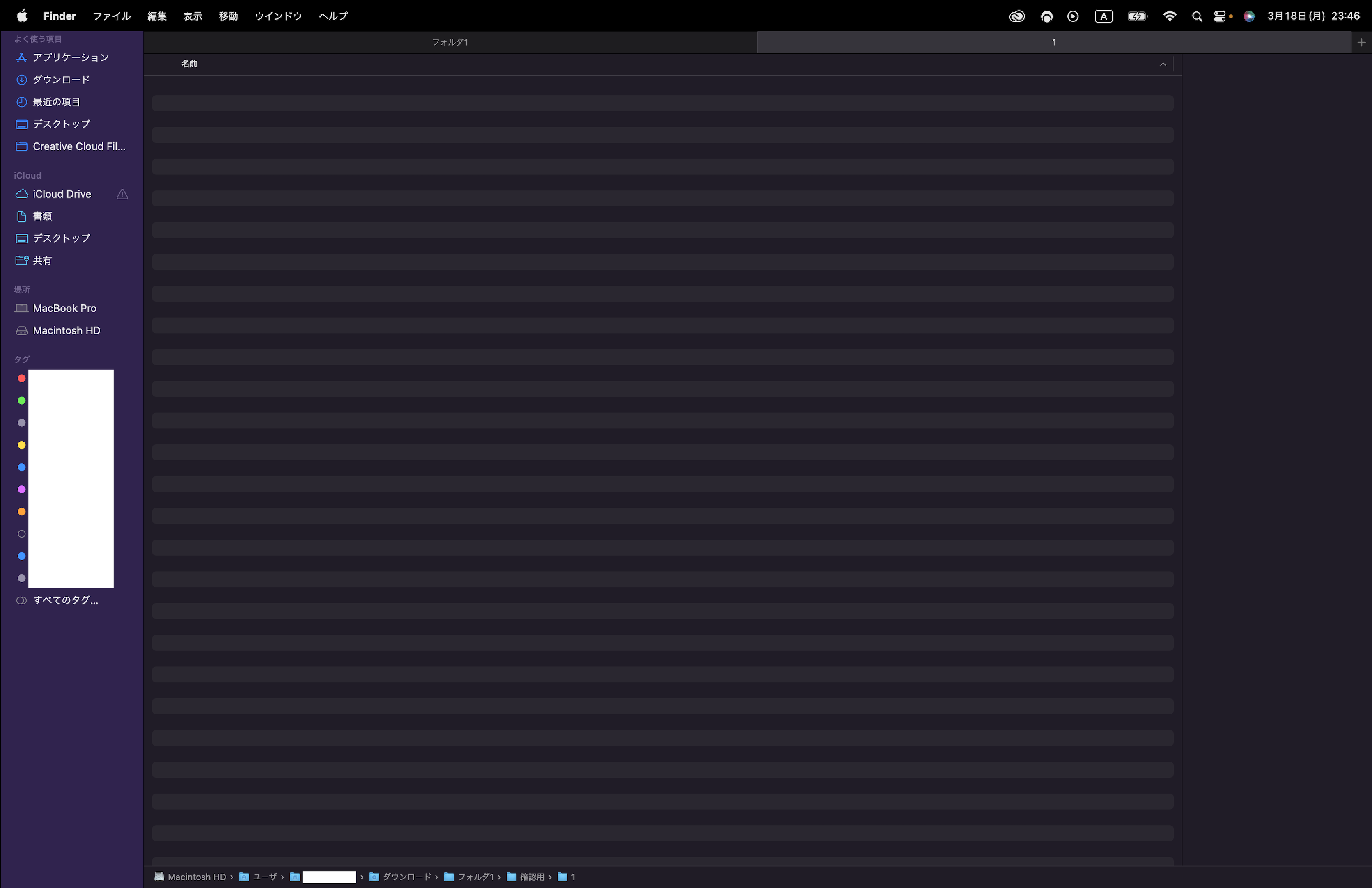 finderでフォルダを開くと別タブで内容が開かれるが、