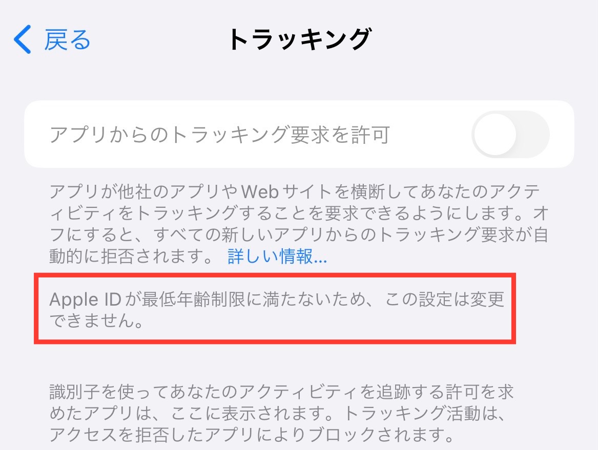 スレッドに付いたマーク ランキングトップの返信 ユーザのユーザプロフィール: 友佳子275 友佳子275 ユーザレベル: レベル 6 8,750 ポイント 2024/03/18 19:46 ymk8 への返信 直接Appleサポートに問い合わせされた方の投稿がありますのでお読み下さい。日本では許可できるのは20歳のようです。トラッキングを許可にできない。 - Apple コミュニティ 返信 リンク