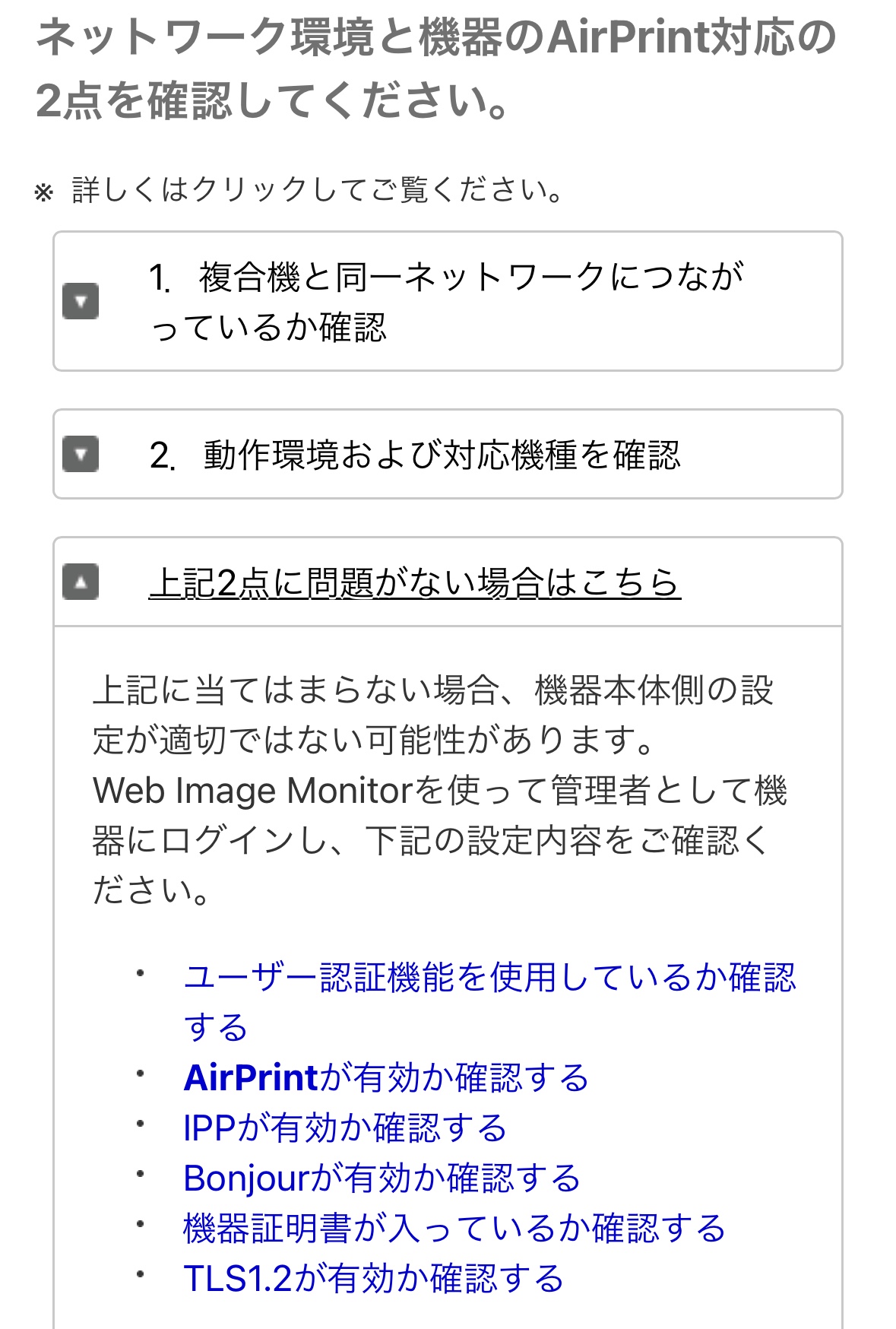 後スクショ貼ってますが、コレはリコーのHPです 各社できない場合の確認内容などもあるので検索してみてはいかがでしょうか?