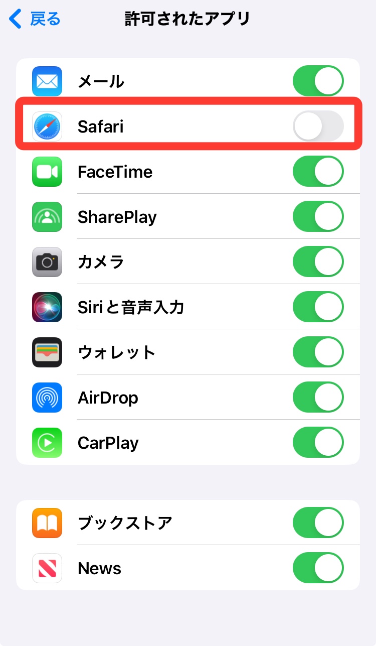 ちなみにSafariは設定のアプリ一覧にもありません。