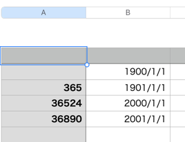 つまりExcelのシリアル値の計算起点は1900/1/1だが、 numbersの起点はなぜかその2日前らしい、と推察できますね。はて。